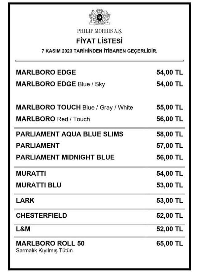 Bugünden geçerli olacak şekilde Philip Morris grubu sigaralara 5 TL zam yapıldı.
