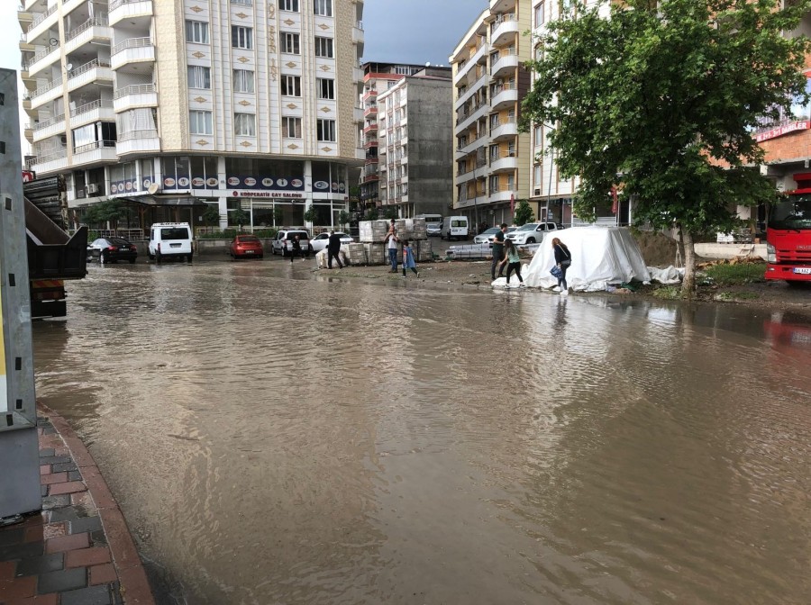 Sağanak nedeniyle bazı cadde ve sokaklar suyla doldu.