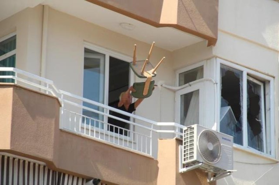 Korkutan olay, saat 11.00 sırasında Döşemealtı ilçesi Bahçeyaka Mahallesi Hacı Kozak Caddesi üzerindeki bir apartmanın 3. kat dairesinde gerçekleşti. Yaklaşık 4 ay önce kiracı olarak mahalleye taşınan ve yalnız yaşayan 48 yaşındaki Ş.Ö., bugün öğle saatlerinde girdiği bunalım sonucu elinde bıçakla balkona çıktı. Çevredekilere hakaretler yağdıran Ş.Ö., daha sonra mutfaktaki eşyaları kırdığı pencereden eşyaları atmaya başladı.