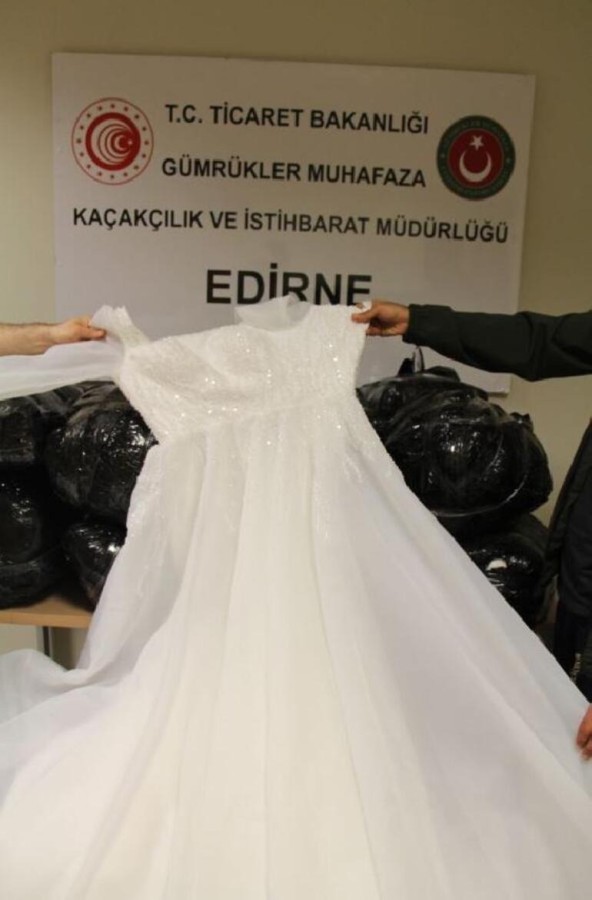 Kontrolde siyah poşetlerden çok 73 genlik çıktı. El konulan gelinliklerin piyasa değerinin 2 milyon 240 bin TL olduğu anlaşıldı.