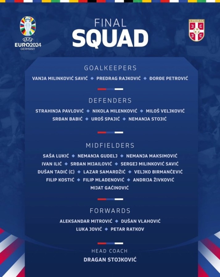 Sırbistan'ın EURO 2024 için nihai kadrosu şöyle: