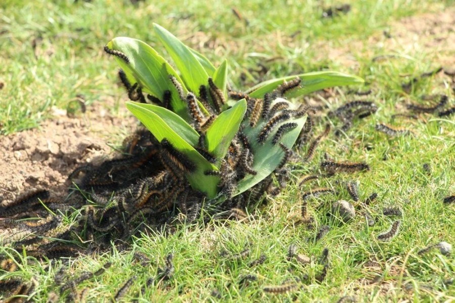 Bölgenin bitki örtüsüne zarar veren tırtıllar, vatandaşların evlerine kadar ilerledi.