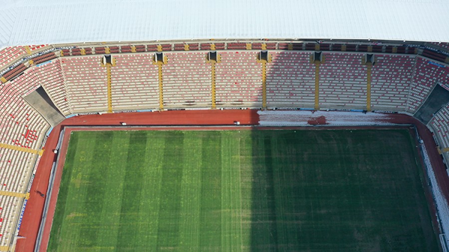 Stadyumun zeminindeki bakım çalışmaları tamamlandı. Zemin çimlerinin korunması için üzerine serilen "agril" adı verilen özel örtü görevliler tarafından kaldırıldı.