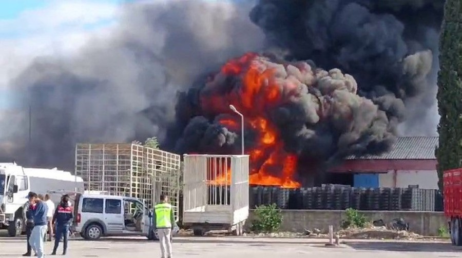 Yangın, saat 11.00 sırasında Serik ilçesi Cumalı Mahallesi Çandır kavşağındaki bir soğuk hava deposunun plastik kasa bölümünde çıktı.