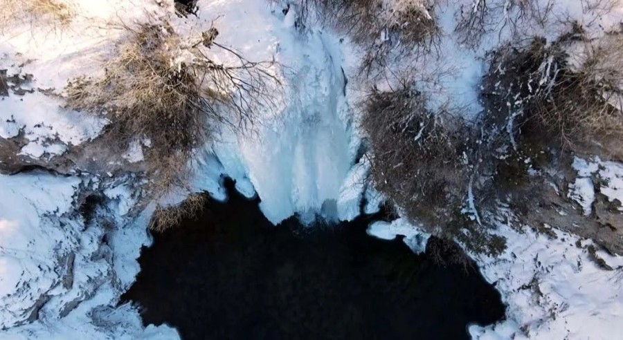 Bayburt'ta soğuk havanın etkisiyle donan Sırakayalar Şelalesi, adeta buzdan "görsel şölen" sunuyor.