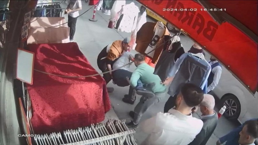 Yaralı Ferhat Y.'ye müdahalede bulunan çevredekiler, daha sonra kucakta taşıyarak yakında bulunan hastaneye götürdü.
