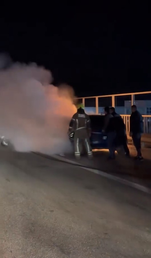 Sürücü, aracını yol kenarına çekerek son anda kendini dışarı attı. Kısa sürede büyüyen yangına, ihbar üzerine olay yerine sevk edilen itfaiye ekipleri müdahale etti.