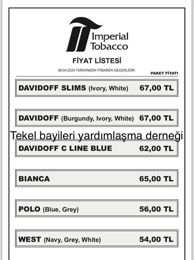 Böylelikle Imperial Tobacco grubunun en pahalı sigarası 67 TL, en ucuzu ise 54 lira oldu.