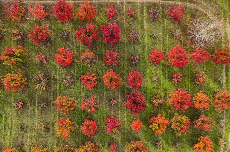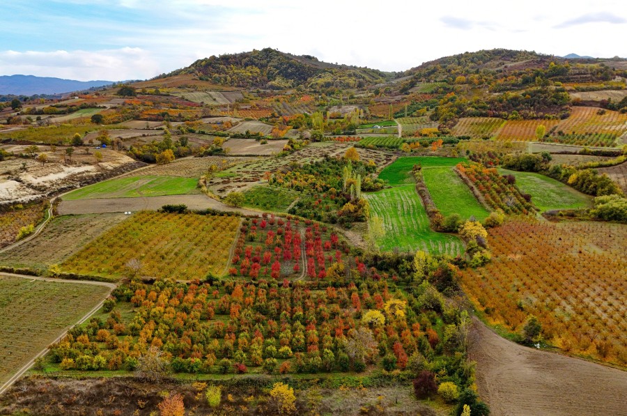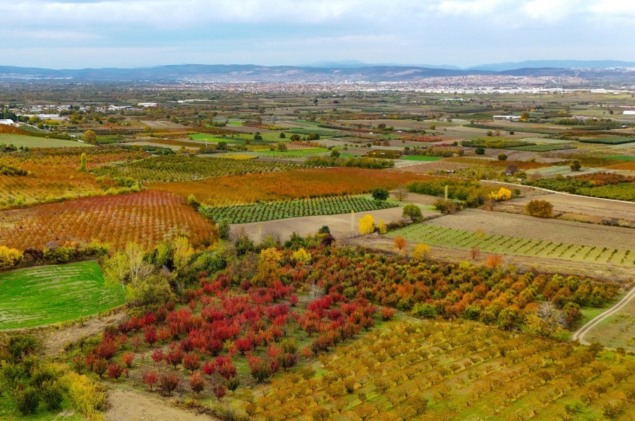 Bursa'nın İnegöl ilçesinde yer alan meyve bahçeleri, sonbaharın tüm renklerini gözler önüne sererken, bölgeye gelen ziyaretçiler için eşsiz bir manzara sunuyor.