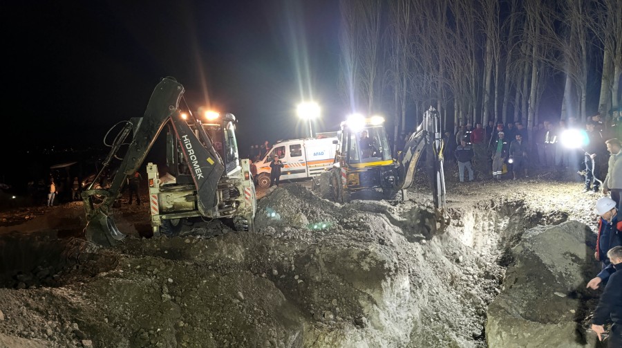 Köylülerin 112 Acil Çağrı Merkezi'ne yaptıkları ihbar üzerine, toprak altında kalan 2 işçinin kurtarılması için bölgeye çok sayıda sağlık, AFAD ve itfaiye ekibi yönlendirildi.