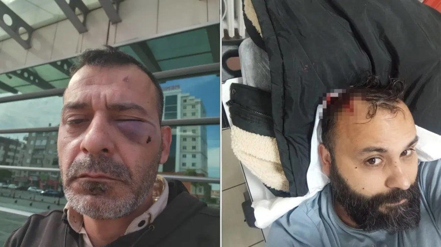 Ocaktan, kardeşi ve 13 yaşındaki oğlu sopalarla darbedilirken; yaşanan kavga ise iş yerinin güvenlik kamerasına saniye saniye yansıdı.