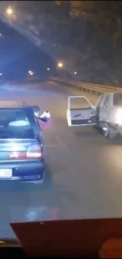 Kocaeli'de iki otomobilin yaptıkları 'pes' dedirtti. Trafiği kesen sürücülerden birisi otomobilin kapısı açık hareket etti, diğeri ile onu görüntüledi.