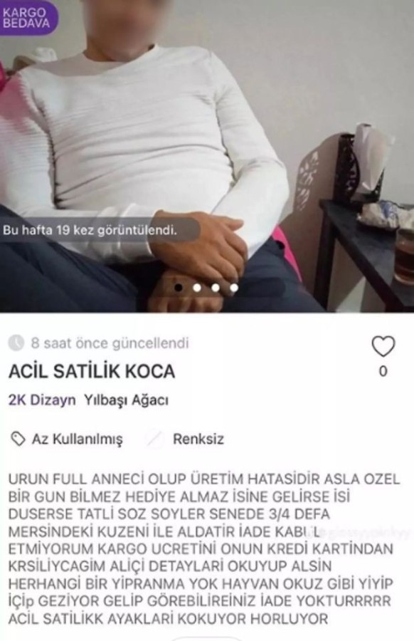 Bir kadın ikinci el satış uygulaması Dolap'ta, kocasını satılığa çıkardı.