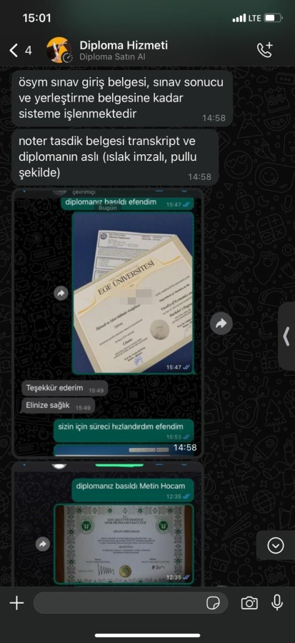 Öte yandan, benzer bir sayfanın kuruluşunu 2009 yılına kadar dayandırdığı, sahte diploma basımı işinde eski olduğunu belirterek fiyat listesi dahi yayınladığı görüldü.