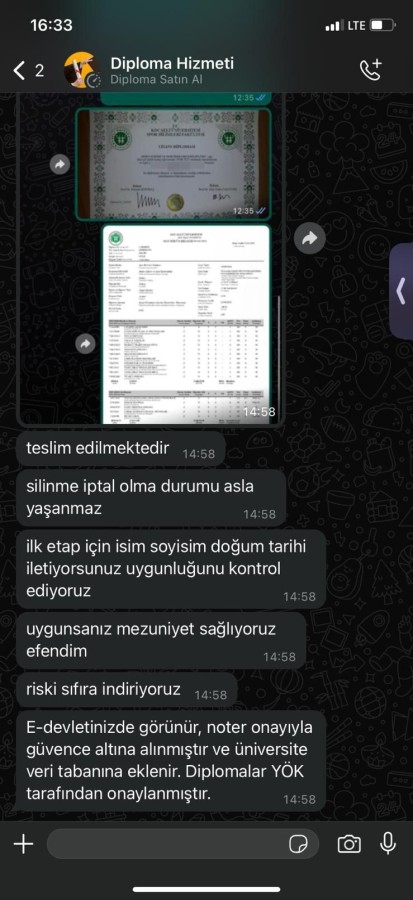 Sosyal medyada bazı hesaplardan; birçok farklı üniversitenin fakültelerine ait sahte diplomaların satışı yapılıyor. Sahte lisans diploması için 25 bin lira ücret talep edilirken, dolandırıcılar diplomanın e-Devlet sistemine de işlendiğini öne sürüyor.