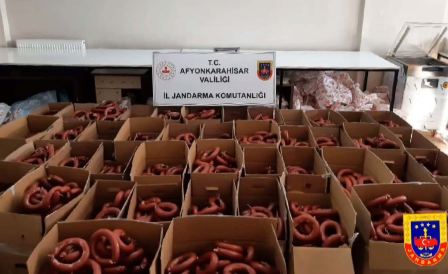 Afyonkarahisar İl Jandarma Komutanlığı ekipleri Sahipata Mahallesi'nde bir depoda insan sağlığını tehlikeye sokacak biçimde bozulmuş ve değiştirilmiş, etiketsiz sucukların sosyal medyadan satışının yapıldığı yönünde ihbar aldı.