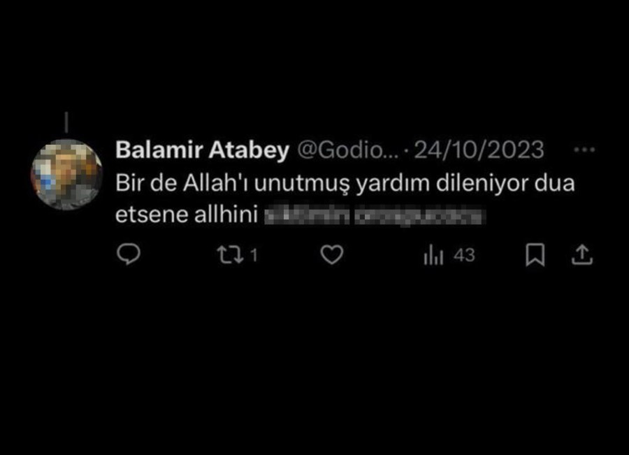 Eskişehir'de Yunus Esad K., 'Balamir Atabey' kullanıcı adıyla sosyal medyada paylaştığı video ve yazılarda Cumhurbaşkanı Recep Tayyip Erdoğan ile dini değerlere hareket etti.