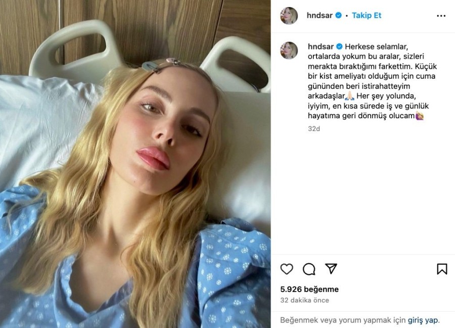 Hastaneden bir fotoğrafını paylaşan ünlü isim kist ameliyatı olduğunu duyurdu. Sunucu paylaşımında sağlık durumuyla ilgili bilgi de verdi.