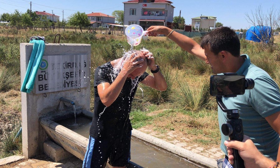 Tekirdağ'da Metin Emre Yeniay, yaşadığı mahalledeki su sorununa dikkat çekmek için Büyükşehir Belediyesi'nin hayvanlar için yaptırdığı yalakta kıyafetleri ile duş alıp, duruma tepki verdi.