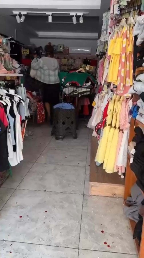 Polisi arayan iş yeri sahibi, kadından dışarı çıkmasını istedi. Ancak kadın, olumsuz cevap verdi. İş yeri sahibi, bu sırada cep telefonuyla kırık camı ve yere dökülen kanları görüntüledi.