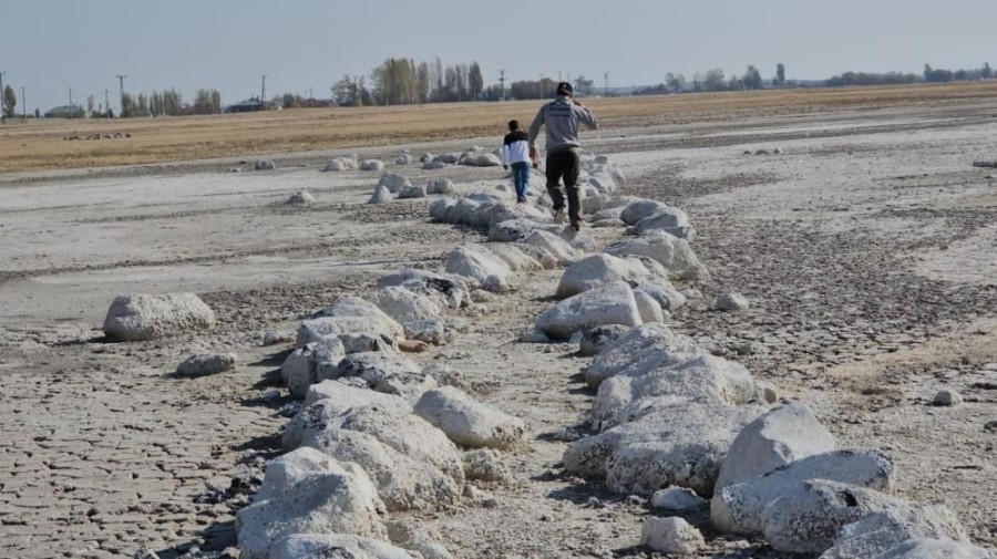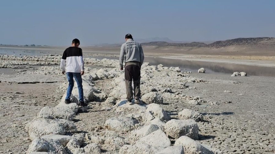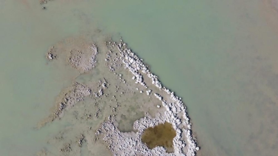 Yüz ölçümü 13 kilometrekare olan ve 200'den fazla kuş türüne ev sahipliği yapan gölde su seviyesinin çekilmesiyle duvar kalıntıları ve mikrobiyolitler gün yüzüne çıktı.
