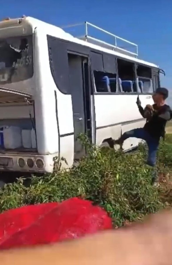 Midibüs sürücüsü olay yerinden kaçtı. Araca zarar veren kişiler de daha sonra bölgeden uzaklaştı.