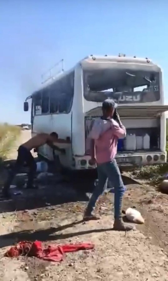 Öte yandan, midibüsü yakarken cep telefonuyla da görüntüleyen kişiler, sosyal medya hesaplarında paylaştı. Olayla ilgili inceleme başlatıldı.