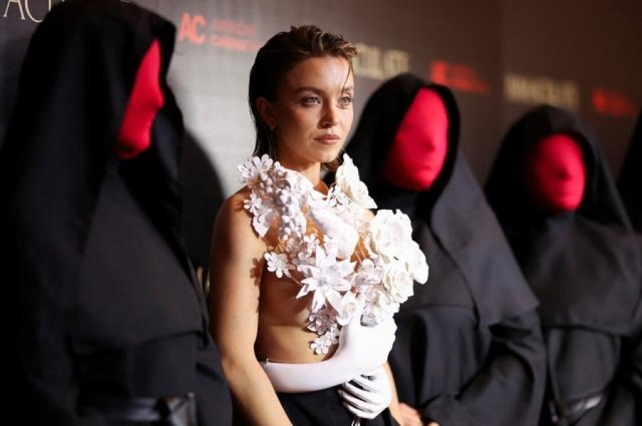 'Riskli' ama ilginç görünümüyle adından söz ettiren başarılı oyuncu hayranlarından yine tam not aldı. Kırmızı halı boyunca oldukça dikkatli davranan Sydney Sweeney sanatsal üstü siyah pantolon ve uyumlu topuklu ayakkabılarla tamamladı.