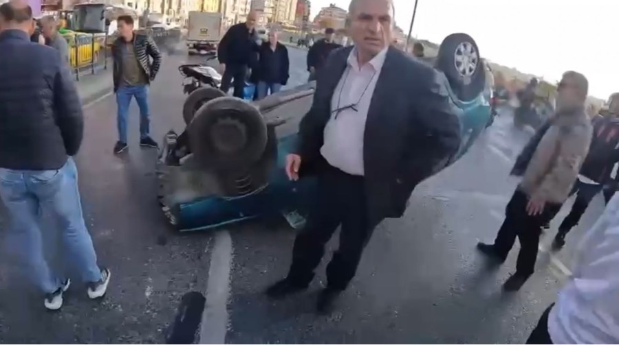 Beyoğlu'nda sürücüsünün direksiyon hakimiyetini kaybettiği otomobil takla attı. Ters dönen otomobilde sıkışan sürücü vatandaşlar tarafından kurtarıldı.