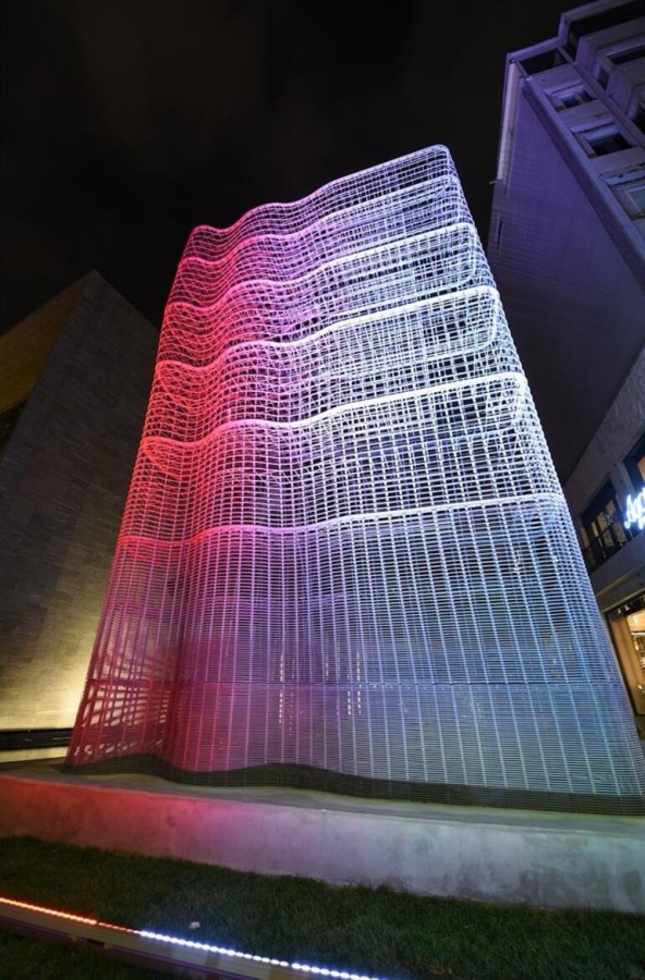 Eserinde ne anlatmak istediğini belirten Eskicioğlu, "Cepheyle, kentin siluetiyle bütünleşmesi açısından formunu oluşturan şey opera binasından çıkan ses dalgalarını, metaforik olarak bunu dalgalandırması. O da sanatın kente yayılmasını temsil ediyor. Sonrasında daha düz bir forma bürünüyor. O da kentle bütünleşen bir forma dönüşmesi. Aydınlatması da bunu destekliyor. Opera binasında etkinlik olduğunda bir dalgalanma efekti oluyor. Renginin sıçraması da yine, hafif bir kırmızılık, opera binasıyla tamamen bütünleşmesiyle ilgili bir hikayesi var. Asıl vurgulu kısmıysa şeffaf olması. Buraya daha klasik kapalı bir heykel yapılabilirdi, zaten yarışmada bu fikrin öne çıkmasının sebebi de buydu, şeffaf bir strüktürünün olması" diye konuştu.