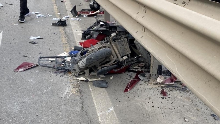 Kocaeli'de tankerin sıkıştırdığı elektrikli bisiklet, bariyere çarparak kaza yaptı.