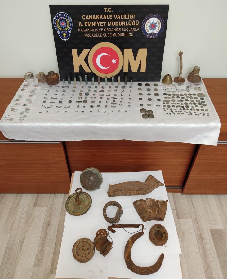 Çanakkale'de, tarihi eser kaçakçılığıyla mücadele kapsamındaki operasyon düzenlendi. Osmanlı dönemi madalyaları ve çok sayıda tarihi eser ele geçirildi. 2 şüpheli gözaltına alındı.