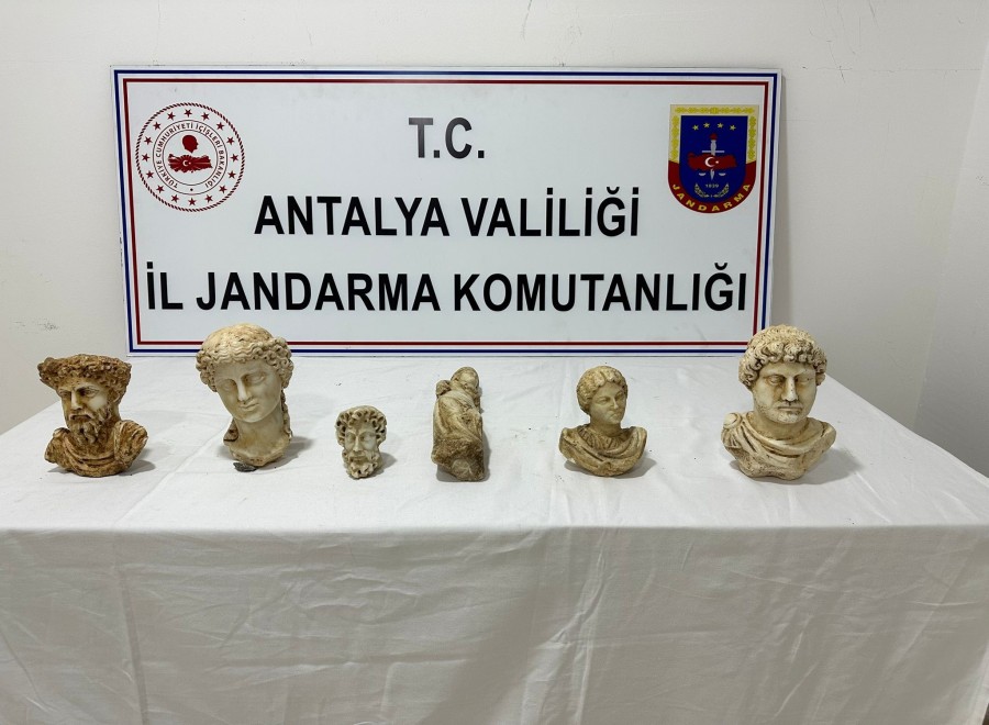 Antalya'nın Manavgat ilçesinde Jandarma ekiplerinin gerçekleştirdiği tarihi eser operasyonunda, Roma Dönemi'ne ait 5 kafa figürü ve insan figürü olmak üzere 6 tarihi eser ele geçirildi. Jandarma olayla ilgili 4 şüpheliyi gözaltına aldı.