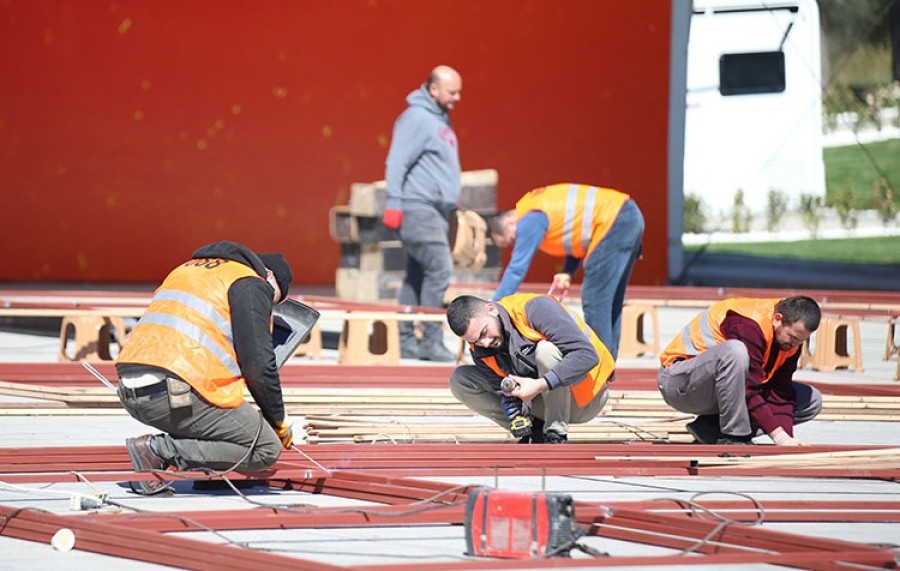 Şehitler Abidesi'nde gerçekleştirilecek törenler için yaklaşık bin kişi kapasiteli portatif tribün çalışmaları ve sahne kurulumları da devam ediyor.