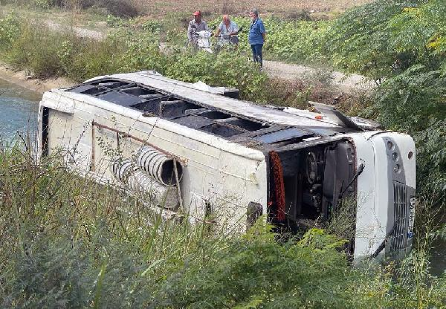 Mersin'de tarım işçilerini taşıyan minibüsün sulama kanalına devrildi. Kazada 3'ü ağır 10 kişi, yaralandı.