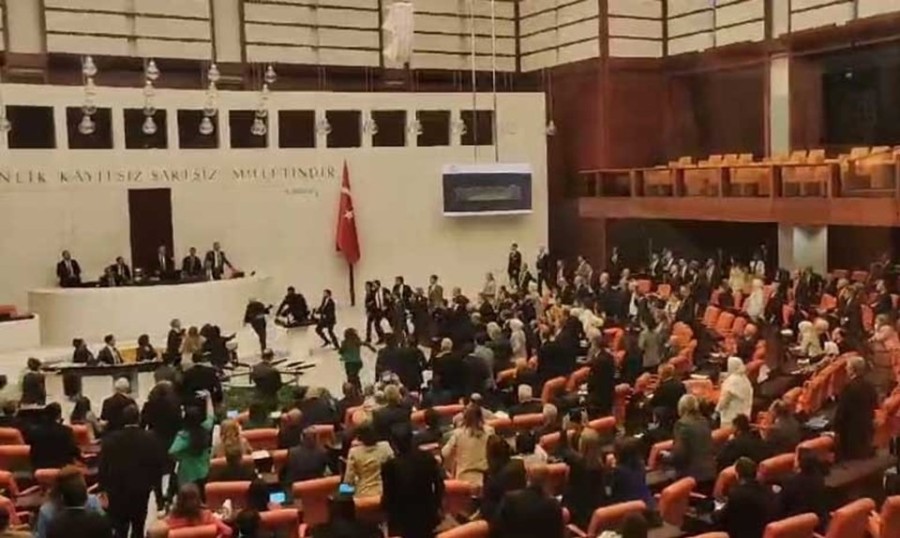 DEM Partililer ile AK Partililer yumruk yumruğa kavga etti. Diğer milletvekilleri ayırmaya çalışsa da kavga dakikalarca devam etti. Kadın milletvekilleri de yaralandı.Genel Kurul salonunda kan izleri görüldü. Yaşanan büyük kavganın ardından oturuma 45 dakika ara verildi.