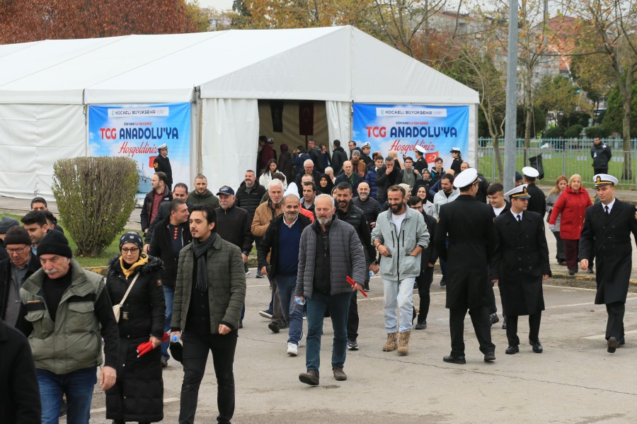 İzmit Körfezi'ne demirleyen Türkiye'nin en büyük askeri gemisi TCG Anadolu, Cumhuriyet'in 100. yılı dolayısıyla ziyaretçilerle buluştu.