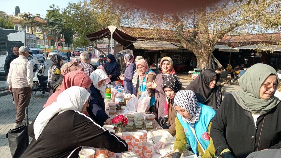Mudanya'da Tekke-i Cedid (HAL) ve Hasanbey Camiinde, Diyanet İşleri Başkanlığı TDV Mudanya şubesi ve Mudanya Müftülüğün öncülüğünde Gazze'ye yardım hedefiyle kadınların hazırladığı yiyecekler, hayrına satışa sunuldu.