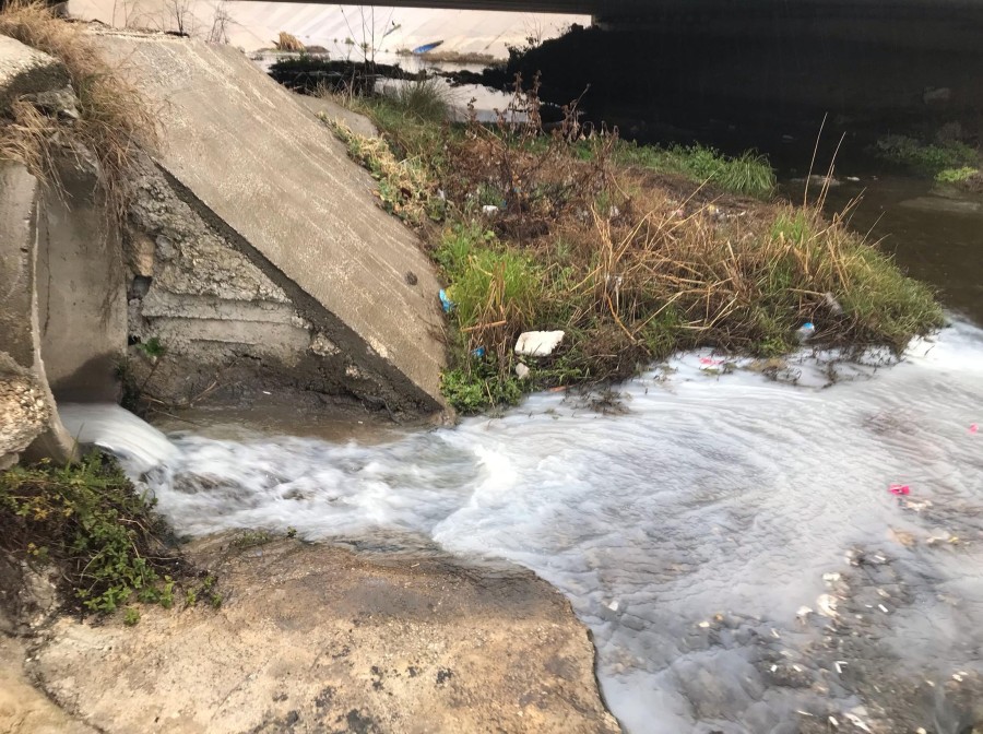 Daha önce ıslah edilen ve çevresi betonlarla kaplanan dere, atıklar nedeniyle beyaz renkte aktı.