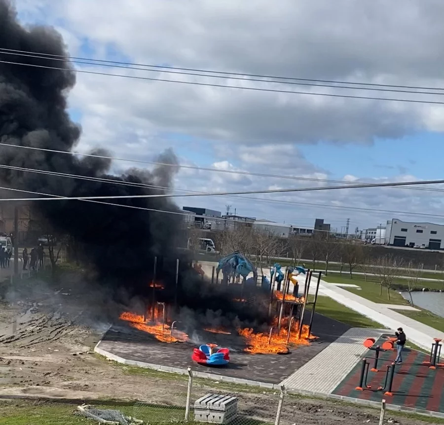 Tekirdağ'ın Ergene ilçesinde çocukların yaktığı ateş sebebiyle parktaki oyun grupları alev alev yandı.