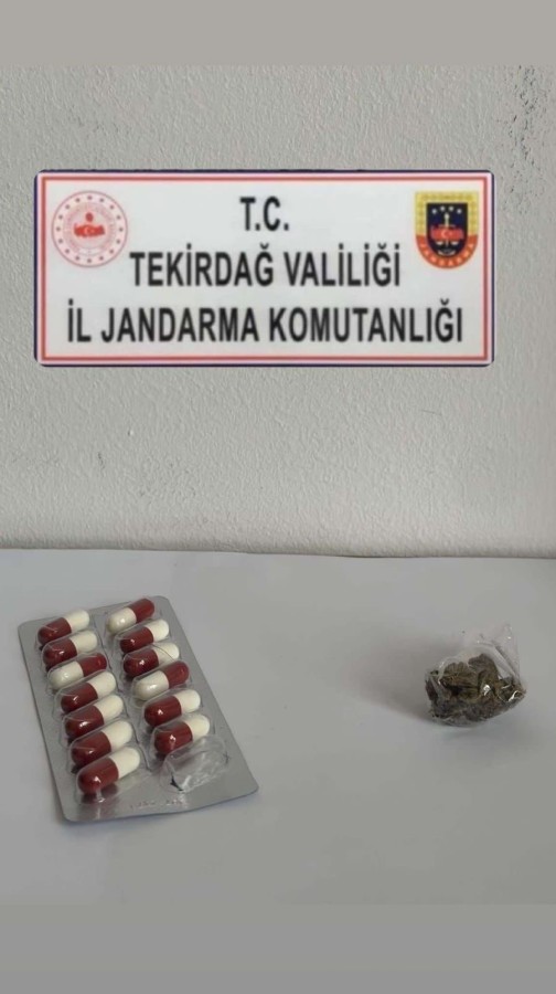 Tekirdağ İl Jandarma Komutanlığınca Kapaklı ilçesi Pınarça Mahallesi'nde icra edilen yol kontrol faaliyetinde, S.Ç. ve R.B. isimli şahısların üzerinde yapılan aramada 4 gram esrar ve 13 adet uyarıcı hap ele geçirildi.