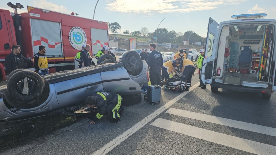Tekirdağ'ın Çerkezköy ilçesinde meydana gelen trafik kazasında, kontrolden çıkan bir otomobil takla atarak ters döndü. Kazada yaralanan sürücü, çevredeki vatandaşların yardımıyla araçtan çıkarılarak hastaneye kaldırıldı.