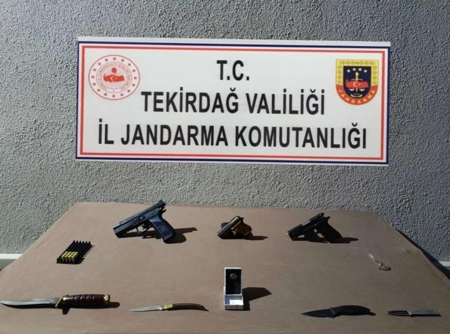 Hayrabolu İlyas Mahallesi'nden T.B. isimli şahsın ikametinde yapılan aramada, 1 adet tabanca, 1 adet kurusıkı tabanca, 1 adet havalı tabanca, 3 adet şarjör, 1 adet komando bıçağı, 3 adet çakı, 12 adet kurusıkı tabanca mermisi, 1 adet tarihi eser olduğu değerlendirilen işlemeli yüzük ele geçirildi.