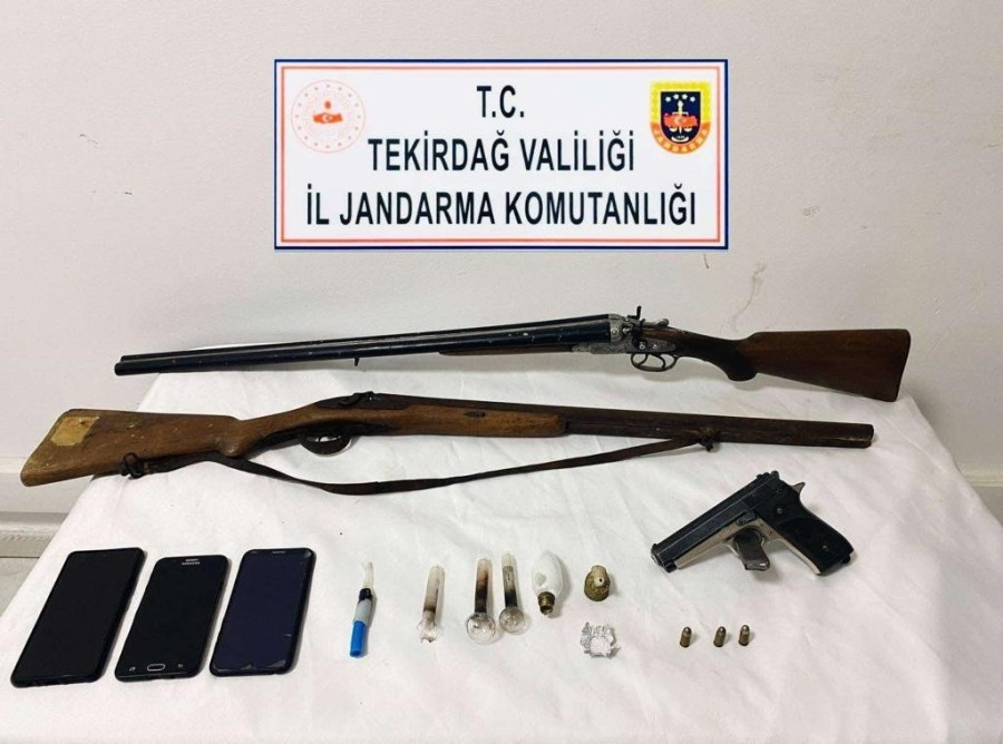 Tekirdağ'da Jandarma ekiplerince yapılan çalışmalarda uyuşturucu ve silahlar ele geçirildi.