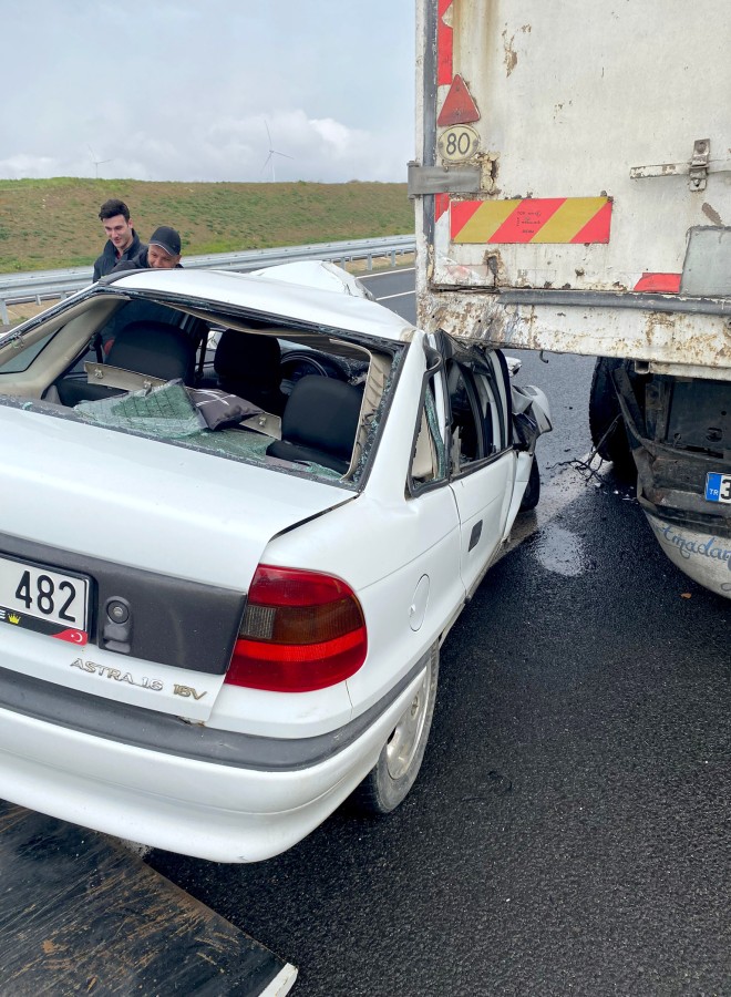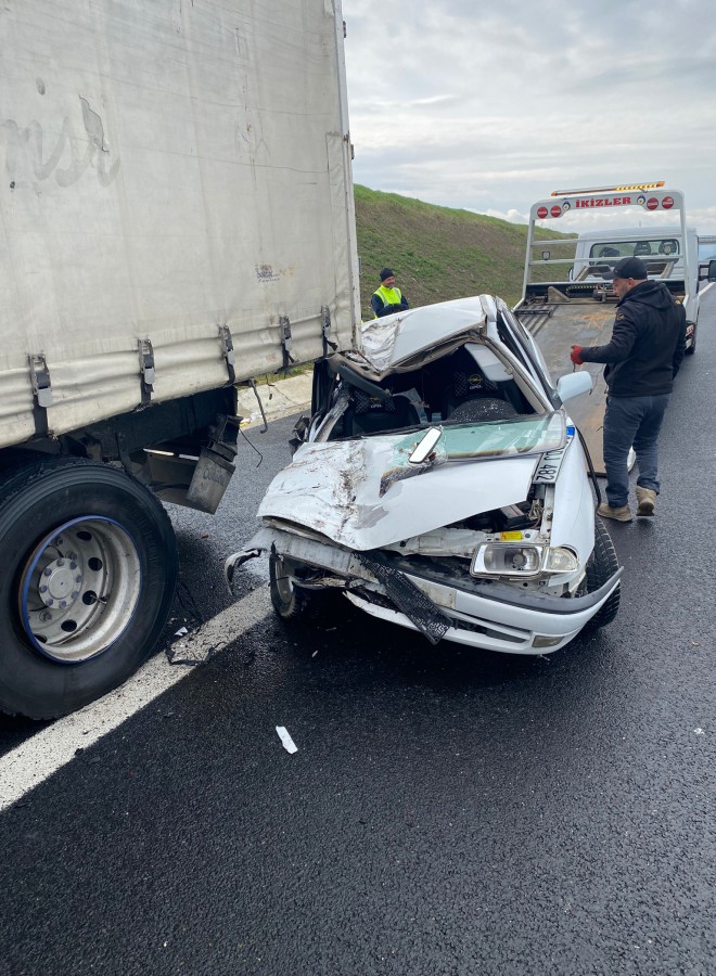 Tekirdağ'ın Malkara ilçesinde kamyona arkadan vuran otomobilin sürücüsü uzman çavuş Onur Efe (26) ile eşi Özge Efe (25) ve 1 yaşındaki çocukları Emin Kaan Efe yaralandı.