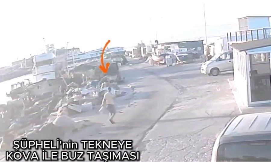 Öte yandan korkunç olayla ilgili güvenlik kamerası görüntüleri de ortaya çıktı. Balıkçı barınağı yakınlarındaki güvenlik kamerasına yansıyan görüntülerde şüpheli ile maktulün teknede buluştuğu, şüphelinin tekneye kovayla buz taşıdığı anlar yer aldı.