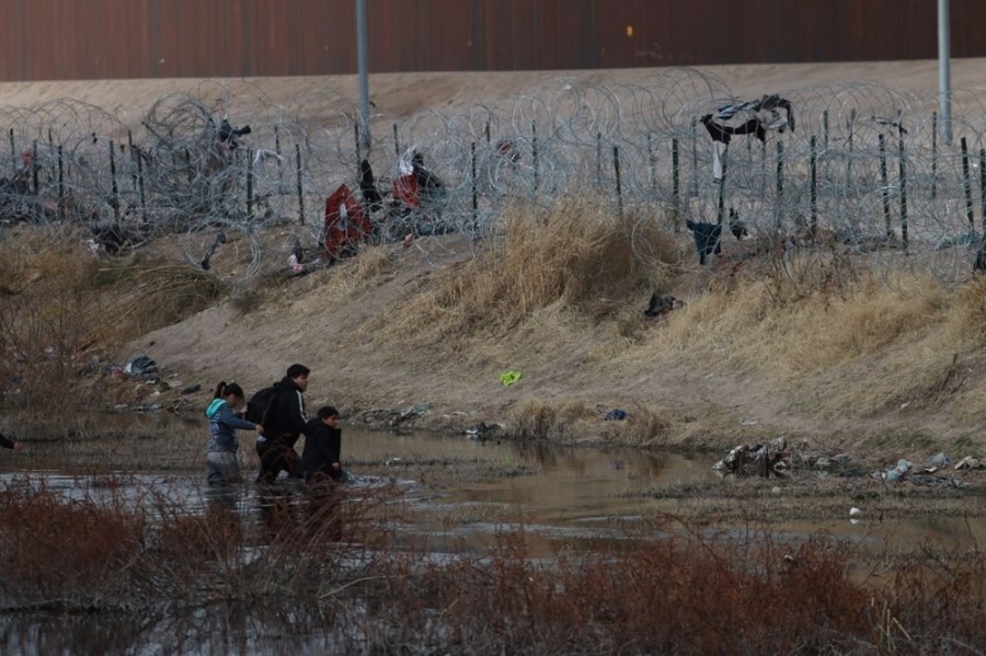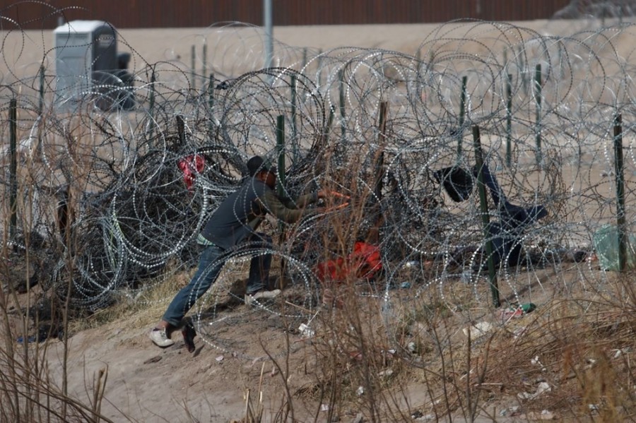 Meksika-Teksas sınırını teşkil eden Rio Grande Nehri'nin sığ bölgelerinden yürüyerek geçen düzensiz göçmenlerin bir kısmı, sınır devriyelerine rağmen dikenli telleri keserek ABD topraklarına geçmeye çalışıyor.