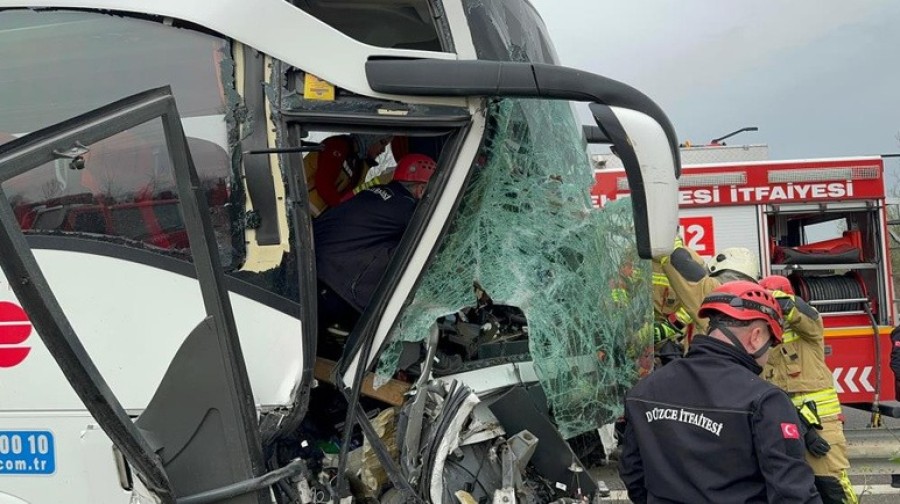 Edinilen bilgiye göre, İstanbul'dan Ankara'ya giden 41 FM 831 plakalı şehirler arası yolcu otobüsü, TEM Otoyolu Düzce Kaynaşlı istikametinde tıra arkadan çarptı.