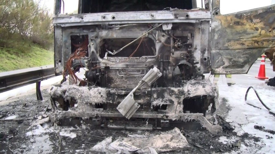 O sırada patlayan lastik janttan ayrıldı ve janttan kıvılcım çıkmaya başladı. Kısa süre içerisinde tanker alev alev yanmaya başladı.