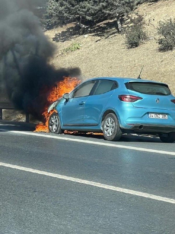 Polis ekipleri otoyolda güvenlik önlemleri alırken itfaiye ekipler ise yangına müdahale etti. Kısa sürede söndürülen yangında otomobil kullanılamaz hale geldi.